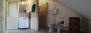 Helyiségei: Alsó szinten konyha, közlekedő, szoba, fürdő+WC, kazánház, plusz egy külön fürdő+WC, garázs. Összesen 70 négyzetméter.